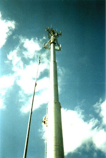 Here is a photo of a Sky-Pro worker climbing a tower to do some maintenance. We also do steeple jack maintenance.
